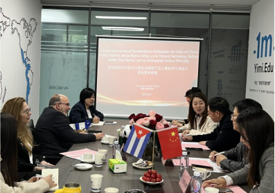 On the afternoon of April 21, 2026, H.E. Alberto Jesús Blanco Silva, Ambassador of the Republic of Cuba to the People’s Republic of China, accompanied by Third Secretary Aileen Díaz Bernal, visited Yimi Education. The delegation was warmly received by Mr.Bruno, General Manager; Mr. Ming, Deputy General Manager; and Mrs.Chenyuan, among others. Both sides engaged in in-depth discussions on China–Cuba relations, as well as international educational exchange and cooperation. The meeting was chaired by Mrs.Alegría.